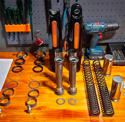 Tubo cromado com o tempo necessita de um novo banho de cromo duro. Bronzinas e lâminas, são trocadas quando apresentam fadiga, e isso leva um bom tempo, desde que o uso da moto se faça em condições razoáveis.